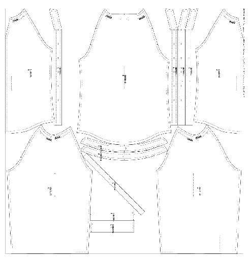 *chemise avec bande de 2,5cm boutonnées , manche raglan et fronces toute autour des encolures