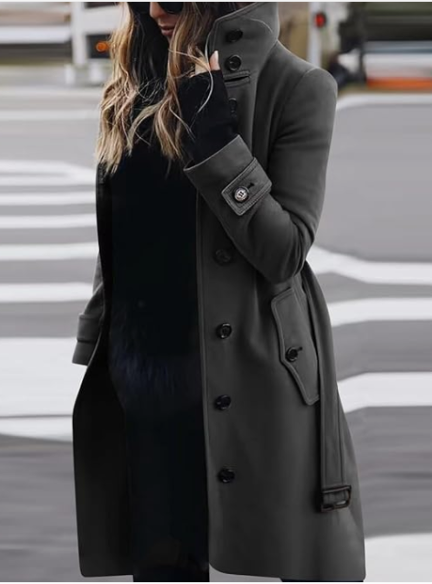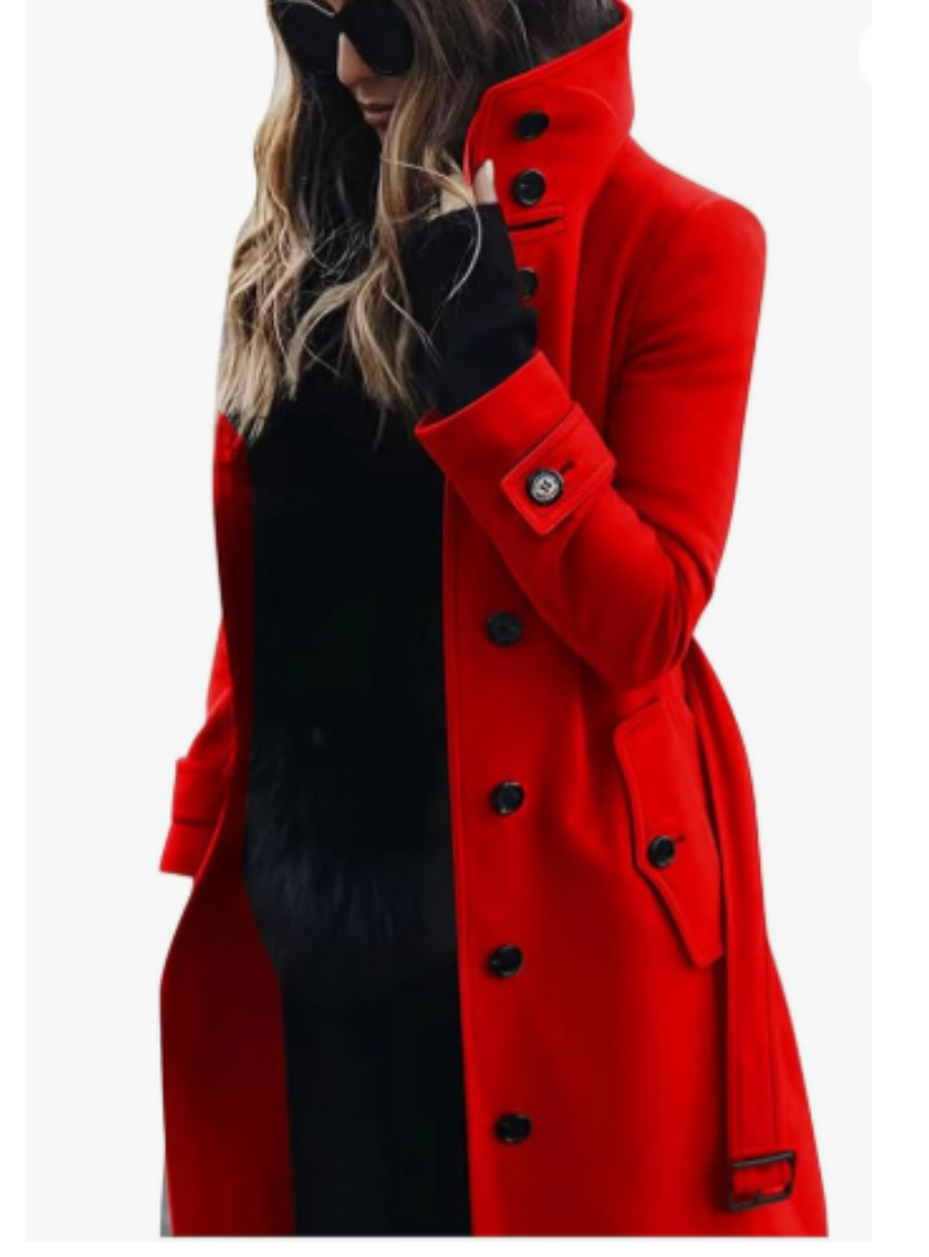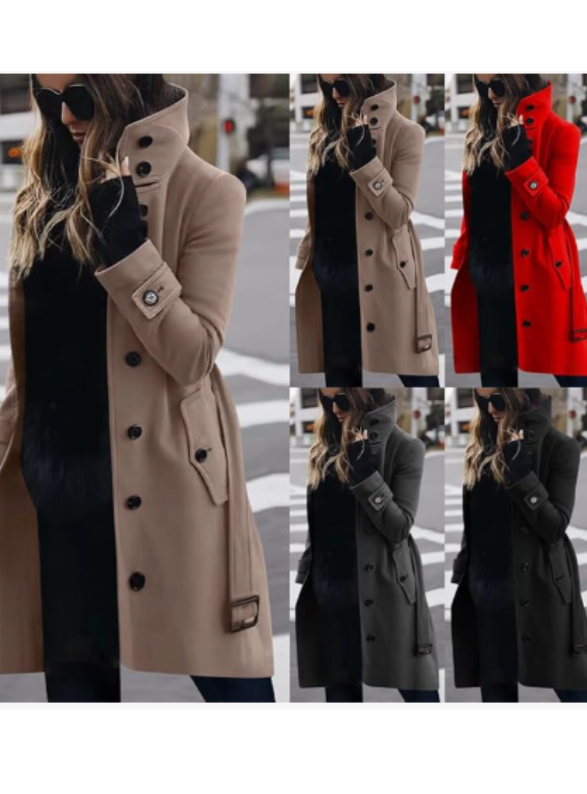 Manteau Elegant doublé, col montant bord devant droit 7 boutons fonctionnels+2boutons col