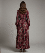 • Jupe : longue et ample, descendant jusqu’au sol, offrant un tombé fluide et élégant. La doublure intérieure accompagne le mouvement et garantit une tenue impeccable.